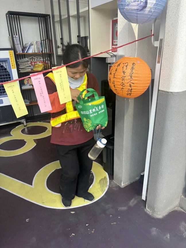活动当天,爱心驿站洋溢着喜庆祥和的节日氛围,火红的灯笼与五彩的灯谜纸条交相辉映,将驿站装点得格外温馨。随着户外劳动者们陆续走进驿站,现场顿时热闹起来。志愿者们热情地引导大家猜谜,有人凝神思索,有人相互讨论,不时因猜中谜底而爆发出阵阵欢快的笑声。猜中灯谜的工友们不仅获得了志愿者们送上的精美礼品,更收获了一份浓浓的节日祝福。活动现场欢声笑语不断,其乐融融,让平日奔波在街头巷尾的劳动者们暂时放下了工作的疲惫,沉浸在中秋团圆、举国同庆的喜悦之中。