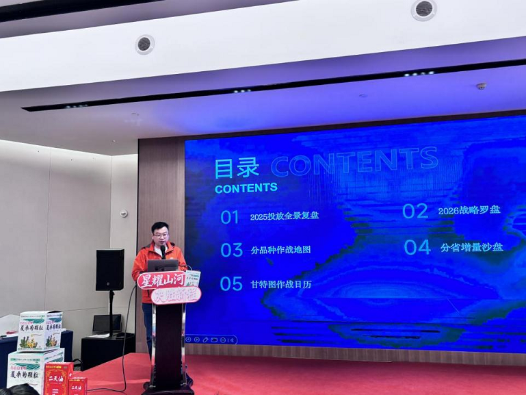 大会在回顾 2025 年奋斗历程的主题视频中启幕。过去一年,面对复杂市场环境,星群公司营销团队知难而进,在市场开拓、渠道深耕等关键领域成绩亮眼:核心产品市场渗透率提高、新客户合作有突破、区域市场布局优化、团队凝聚力与战斗力增强。这些成果为公司 2026 年高质量发展筑牢根基。