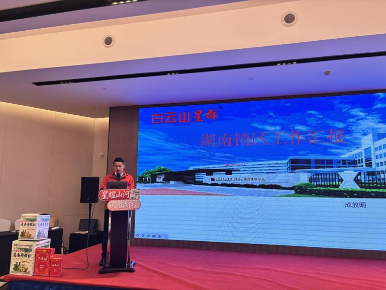 大区优秀案例分享环节中,湖南大区经理成放明、广西大区经理范创彧、粤东大区兼潮汕联络处经理李宏依次登台亮相。他们结合各自区域的实战经验,从终端动销策略、客户关系维护、新品推广路径等多个维度,对 2025 年市场攻坚中的经典案例进行了复盘。案例里既有突破市场瓶颈的破局之策,也有精准把握消费需求的创新举措,干货十足。