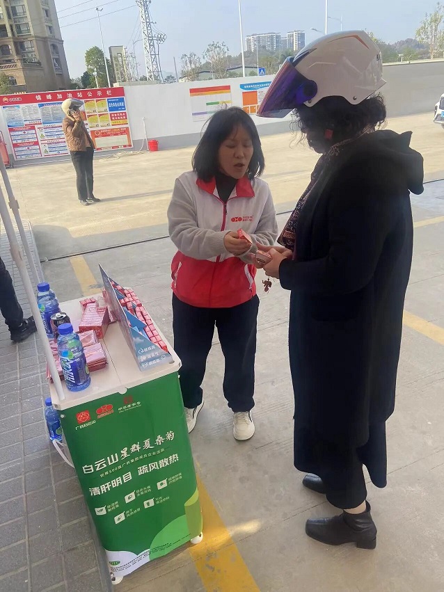 白云山星群的志愿者一边将二天油递给正在休息的车主乘客,一边耐心讲解使用方法和功效。其间,一位返乡务工人员感慨道:“往年坐大巴回家,车里异味重,路途颠簸,总感觉头晕恶心,今年有了二天油在身边,终于能舒舒服服地看看窗外风景了”。