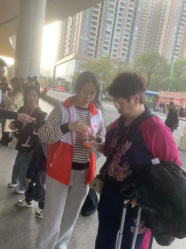 与此同时,两广地区的多个高铁站里,星群志愿者的身影随处可见。他们携手各地合作单位,共同搭建起“情满旅途”志愿服务台。