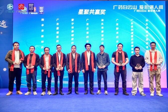 为致敬一路同行的合作伙伴,研讨会最后举行了隆重的颁奖仪式,分别将星锐先锋奖、星辰伙伴奖、星聚共赢奖、星耀伙伴奖四大奖项授予成长潜力突出的新锐伙伴、合作超过十年的忠诚伙伴、联合营销成效显著的共赢伙伴,以及年度业绩领先的核心伙伴。广东深华药业有限公司总经理罗日红、创美药业股份有限公司集团副总裁郑玉燕分别作为获奖代表发表感言。她们也表示,未来将继续与广药深化全方位合作,同心同德、聚力攻坚,共同推动粤东医药大健康产业高质量发展。