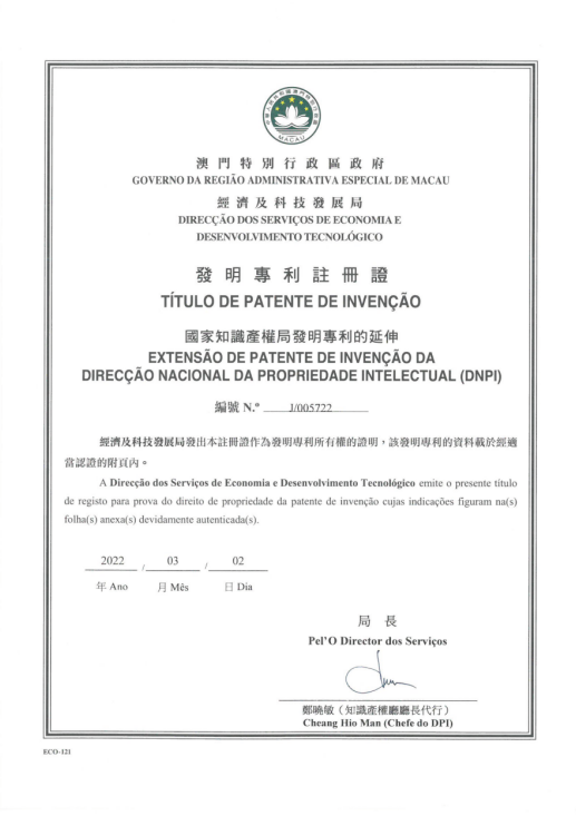 值得一提的是,星群公司核心科研专利成果 “夏桑菊提取物在抑制人类冠状病毒中的应用”,现已获得澳门经济及科技发展局专利延伸授权,实现核心技术知识产权在澳门的落地保护。该专利明确了夏桑菊提取物在抑制人类冠状病毒中的作用机制与应用价值,为经典名方的现代功效提供了权威、科学的循证支撑,也打破了国际市场对中医药 “经验医学” 的固有认知,为中医药国际化发展筑牢了科研根基。
