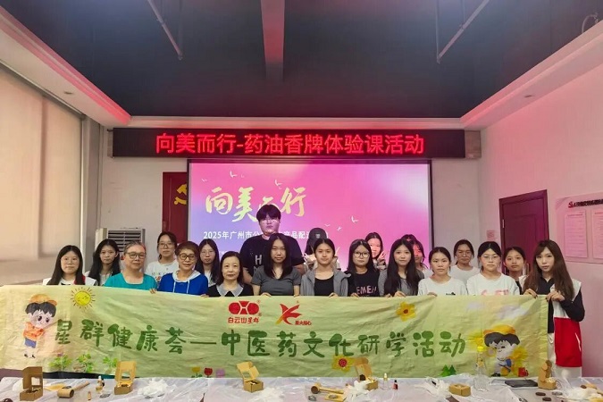 作为全国首批“中华老字号”企业,同时也是夏桑菊制作技艺、二天油制作技艺、通窍救心油制作技艺“三非遗”项目的保护单位,白云山星群公司始终致力于岭南中医药文化的活态传承与跨界创新。此次白云山星群“向美而行”药油香牌课程走进白云松江街,是白云山星群公司“星群健康荟”品牌推动非遗“年轻化、时尚化”传播的又一次生动实践。让青年学生在动手创造中深化文化认同,让传统文化在青年一代手中焕发新的生机与活力。