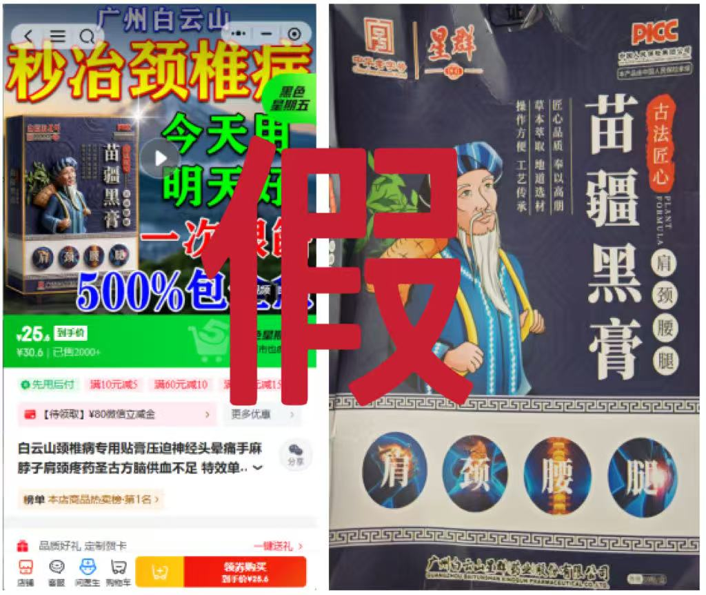 近日,我司发现南阳艾善堂天然艾草制品有限公司生产的“苗疆黑膏”,未经授权擅自使用“白云山星群”“群星”等商标且冒用我司企业名称,在线上电商平台销售,涉嫌商标侵权及不正当竞争,严重损害我司品牌声誉与消费者权益。