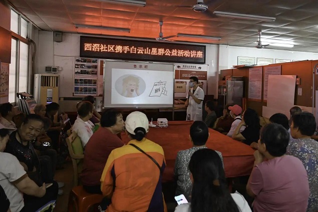 除了健康讲座和产品体验,现场义诊也是本次活动的一大亮点。白云山星群公司联合西滘社区医生,在社区活动中心设立临时义诊点,为居民提供血压测量、常见病咨询、慢性病管理指导等免费医疗服务。医生们耐心倾听居民健康诉求,细致解答用药疑问,并针对不同身体状况提出个性化的建议。从慢性病日常调理到季节性保健,专业指导让居民在家门口就享受到贴心的健康关怀。