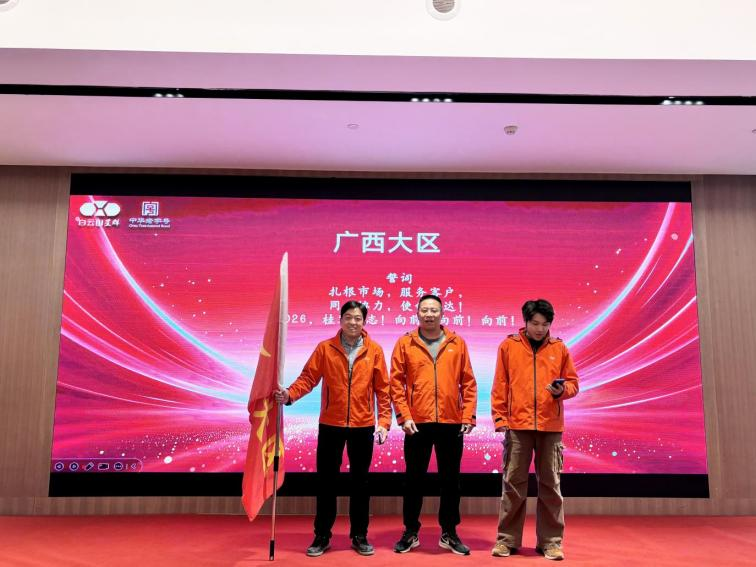 在授旗仪式上,公司党委书记、董事长贺庆及党委副书记、总经理李晓东亲手将象征着使命与荣耀的战旗授予各大区负责人。接过战旗象征着接过了开拓市场的重任,接过了公司对各大区再创佳绩的殷切期望。