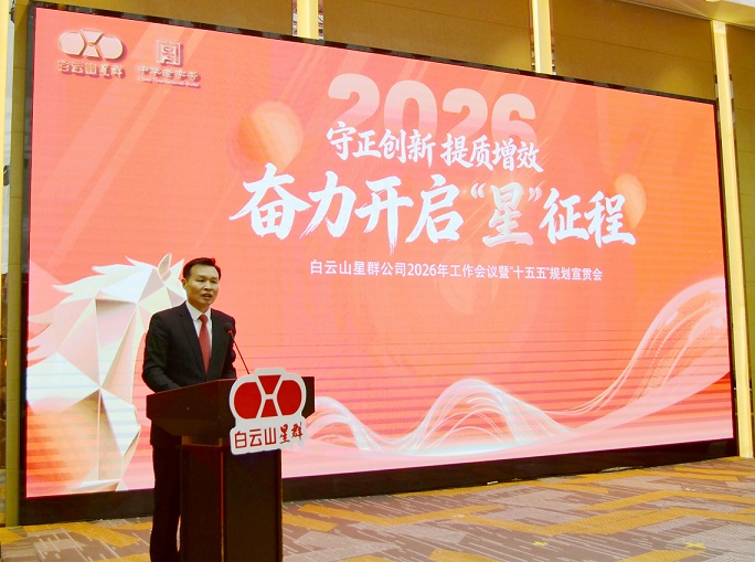 1月30日下午,星群公司召开公司2026年度工作会议暨“十五五”规划宣贯会,系统总结公司2025年及“十四五”期间改革发展的成效与经验,科学谋划“十五五”规划发展路径,部署2026年重点工作,全力以赴推动“十五五”规划发展开好局、起好步。广药白云山高管刘菲受邀出席会议,公司领导班子成员、中层以上管理人员、高层次人才、获奖代表、后备干部及员工代表等120余人参加会议。