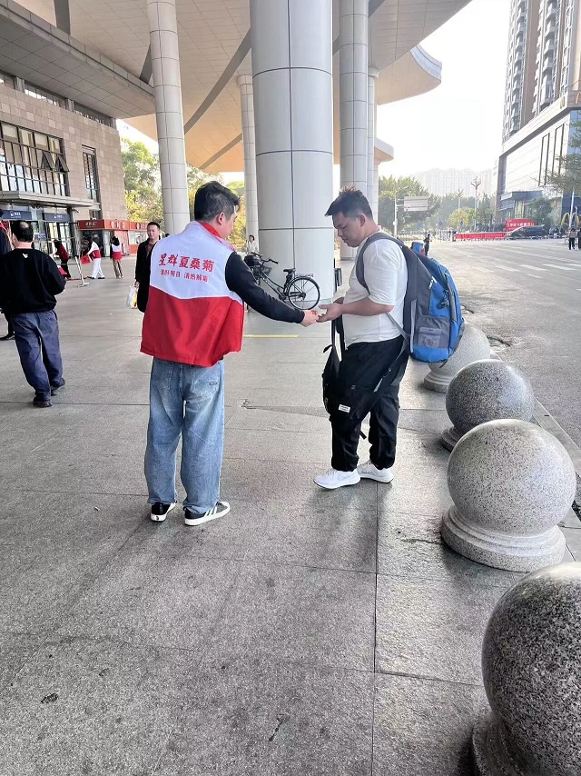 与此同时,两广地区的多个高铁站里,星群志愿者的身影随处可见。他们携手各地合作单位,共同搭建起“情满旅途”志愿服务台。
