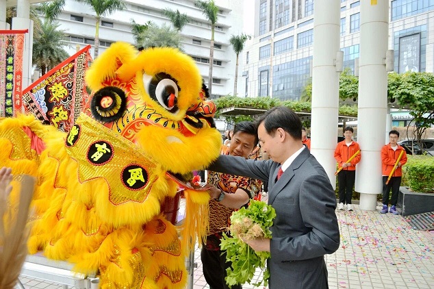 公司领导首先代表星群班子向全体星群员工及家属致以诚挚的新春问候和美好的马年祝福。随后,党委书记、董事长贺庆带领班子成员为醒狮提笔点睛。六头醒狮随着锣鼓节奏飞身腾跃,翩翩起舞,攀高环节表演将现场气氛带到高潮。之后的醒狮采青寓意着公司在新的一年里生机勃勃、鸿运当头、业绩蒸蒸日上。