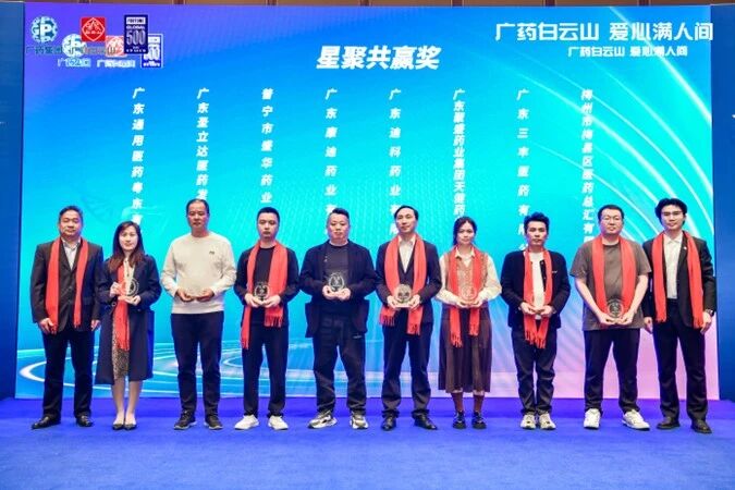 为致敬一路同行的合作伙伴,研讨会最后举行了隆重的颁奖仪式,分别将星锐先锋奖、星辰伙伴奖、星聚共赢奖、星耀伙伴奖四大奖项授予成长潜力突出的新锐伙伴、合作超过十年的忠诚伙伴、联合营销成效显著的共赢伙伴,以及年度业绩领先的核心伙伴。广东深华药业有限公司总经理罗日红、创美药业股份有限公司集团副总裁郑玉燕分别作为获奖代表发表感言。她们也表示,未来将继续与广药深化全方位合作,同心同德、聚力攻坚,共同推动粤东医药大健康产业高质量发展。