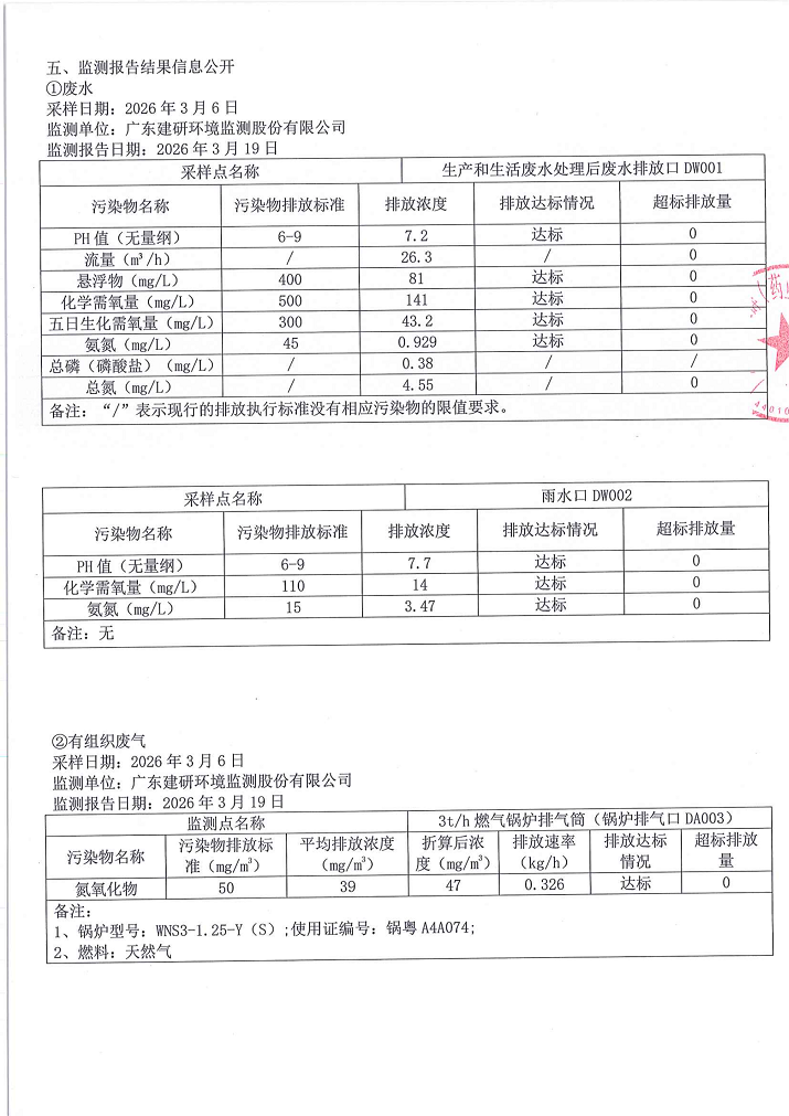 星群2026年第一季度环境监测信息公开