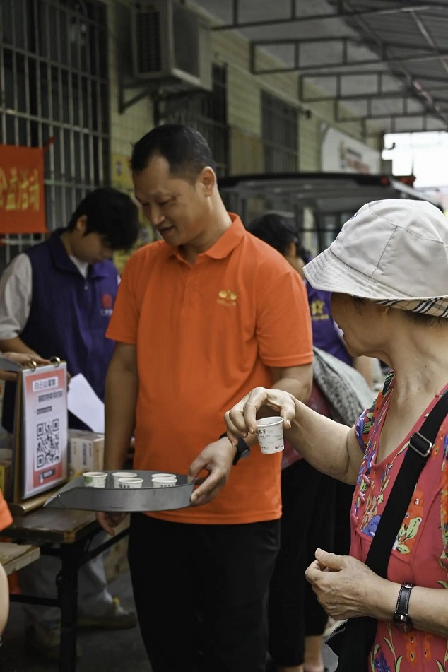 与此同时,星群夏桑菊的试饮活动也吸引了众多居民驻足品尝。星群夏桑菊源自清代吴鞠通《温病条辨》的经典名方“桑菊饮”,由夏枯草、桑叶、野菊花精制而成,具有清肝明目、疏风散热、除湿痹等功效。不少中老年居民表示,夏桑菊一年四季常备家中,今天在社区里就能品尝到熟悉的甘甜芳香,既暖心又实用。这不仅是一份健康守护,更是一段跨越几代人的味觉记忆。