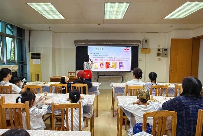 本次活动现场,星群文化团队将星群历史、二天油、通窍救心油的历史、地药材辨识及传统药油的制作技艺娓娓道来,让现场参与活动的市民朋友了解了利用中药渗透与保留特性,将草本精华凝练成药油的传统技艺,也感受到了星群公司作为“中华老字号”代代相传的匠心坚守。