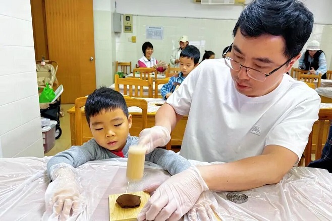 在制作药油香牌环节中,大家化身为非遗传承的“手艺人”。将星群二天油滴入调配好的中药泥团,再将其揉、捏、按压、定型……二天油的独特药香随着指尖的温度缓缓散发,看着自己亲手制作出的药油香牌,大家收获了满满的成就感。